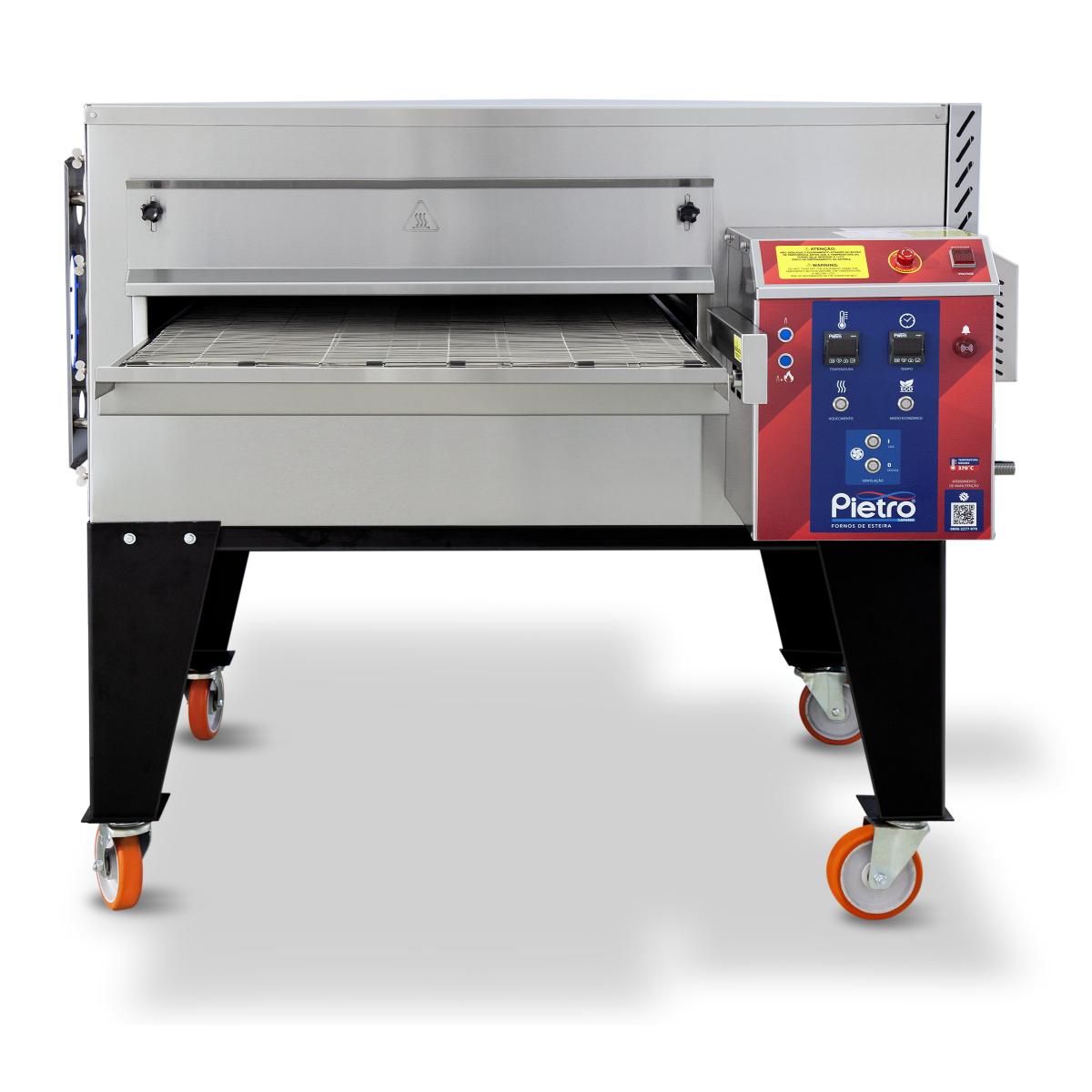 Forno excelente para cocção de pizzas, pizzas de metro, esfihas, pães, tortas e outros alimentos forneáveis. Proporciona a padronização de seus produtos, aumenta a produtividade e diminui o tempo para delivery. Pode operar com esteira alongada (sob consulta). Possui chave de modo econômico – para economia de gás. Dentro das normas de segurança do trabalho NR-12**. Dispensa mão de obra especializada.